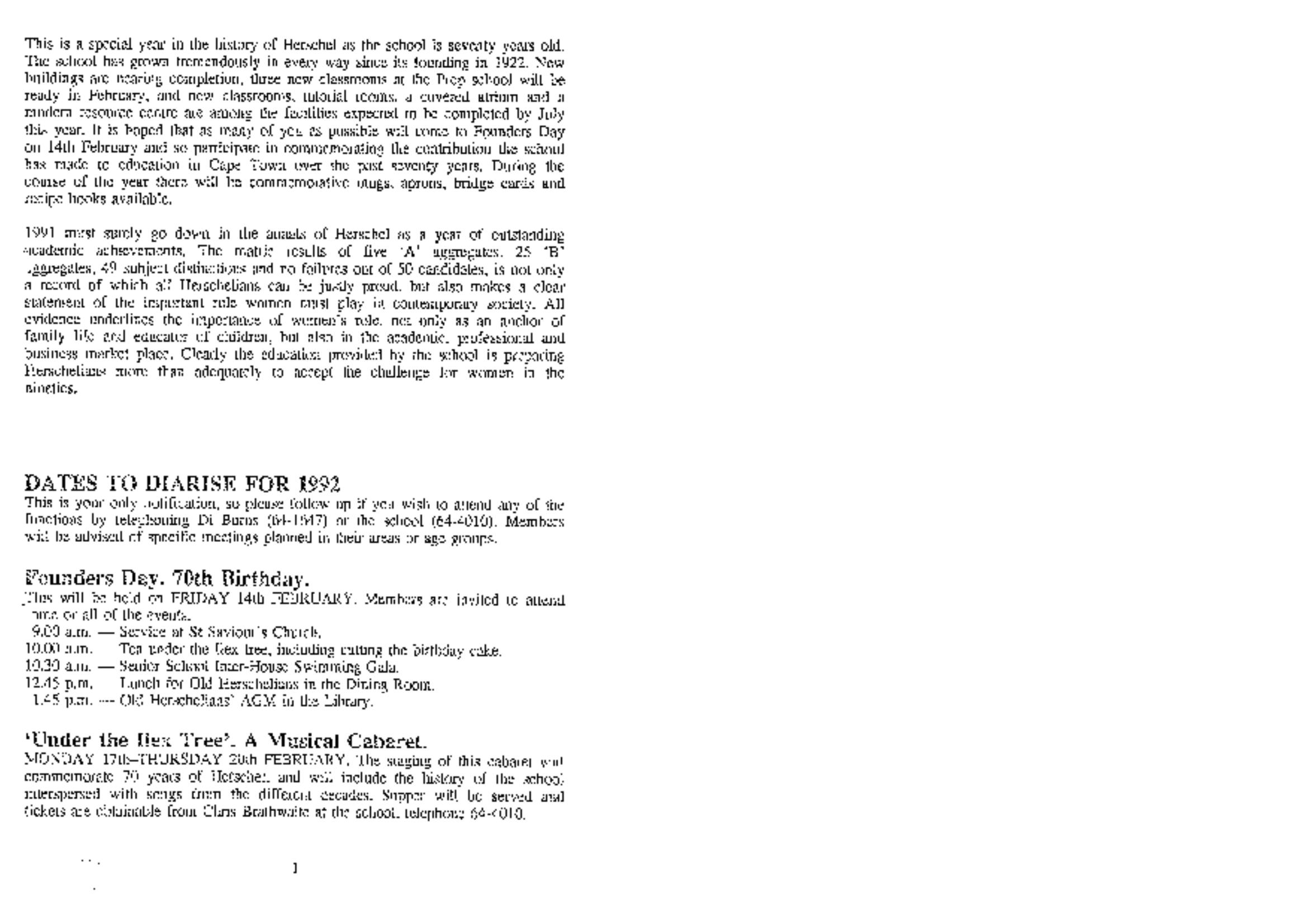 Old Herschelian Association Newsletter 1992
