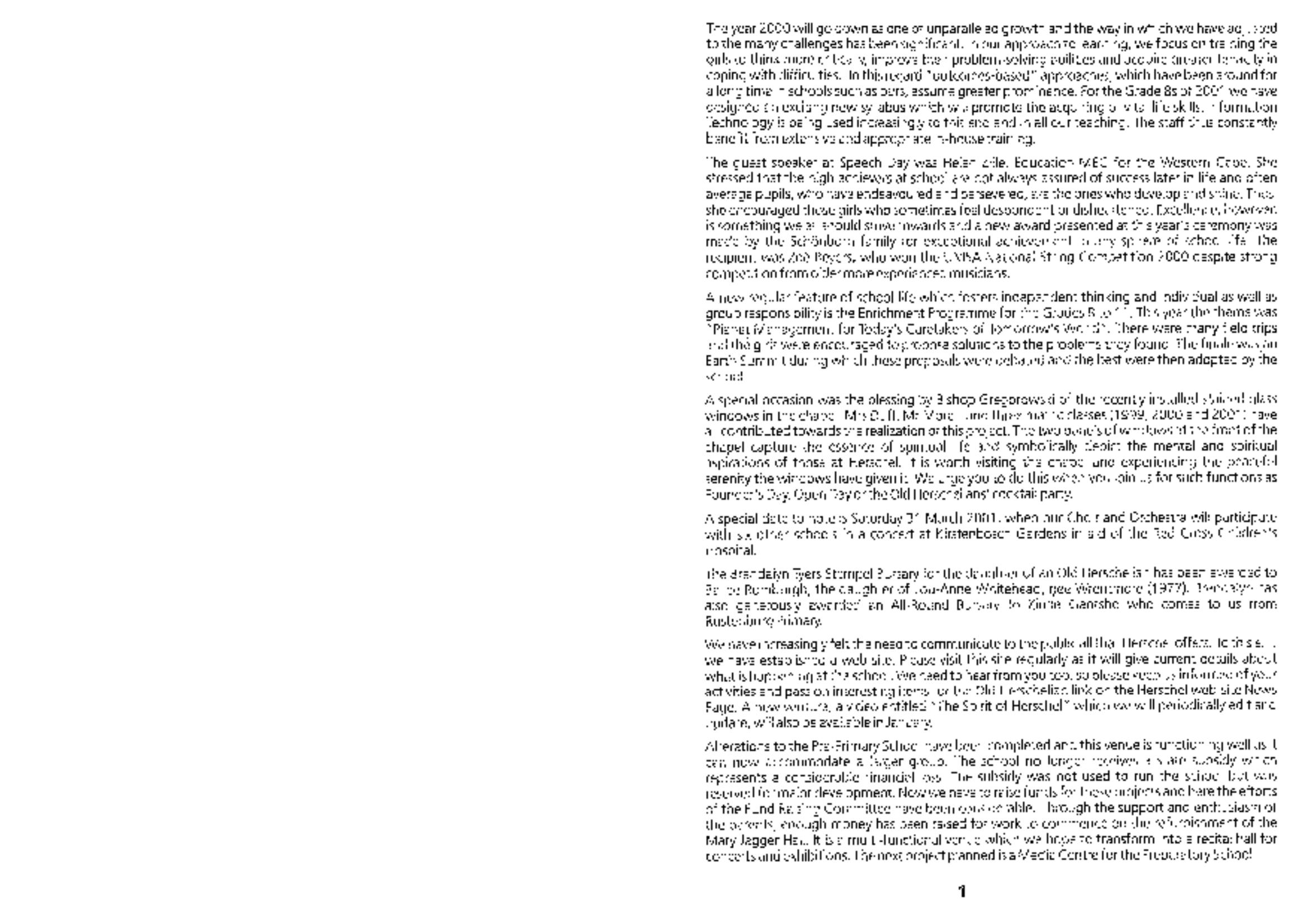 Old Herschelian Association Newsletter 2001
