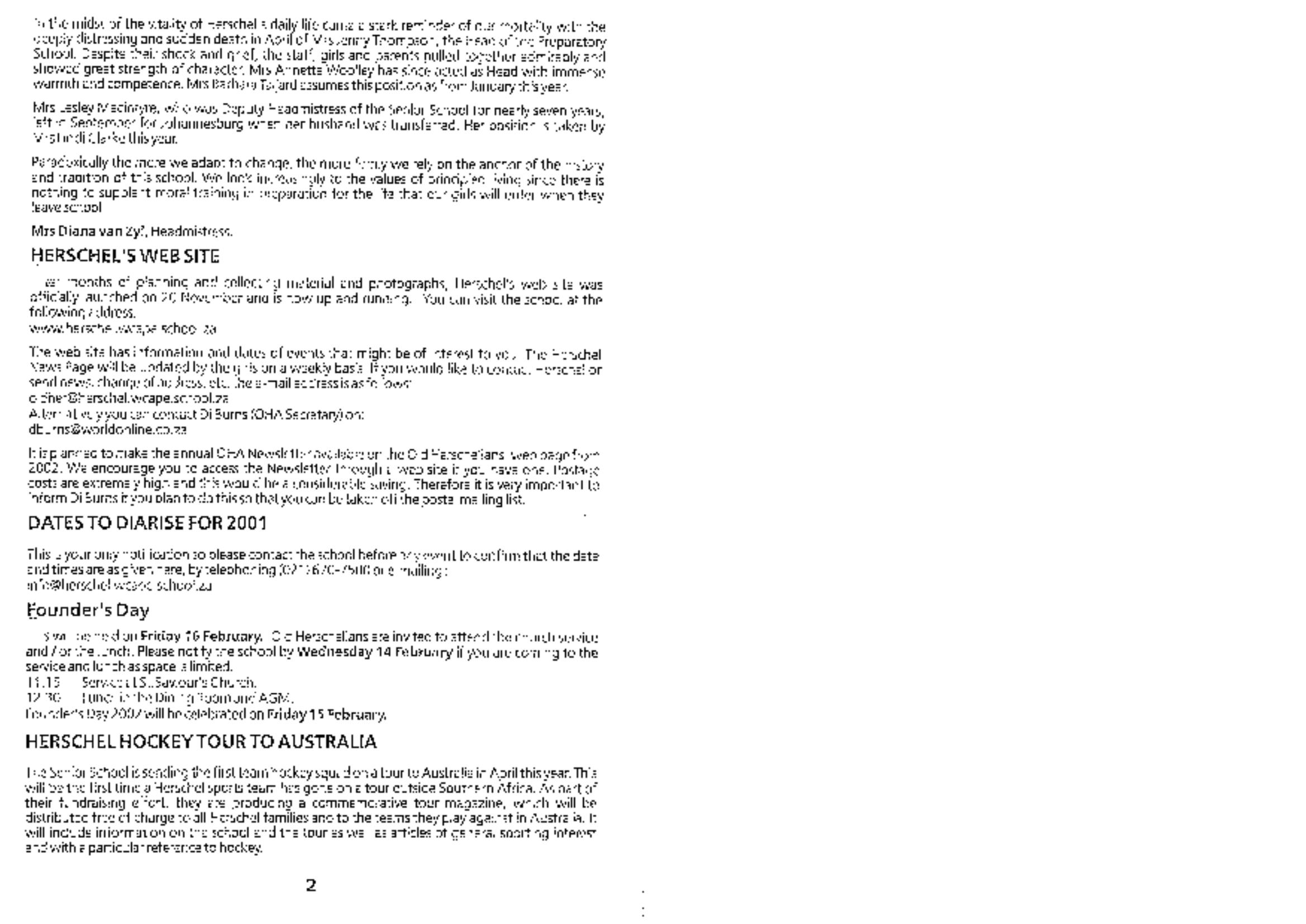 : Old Herschelian Association Newsletter 2001