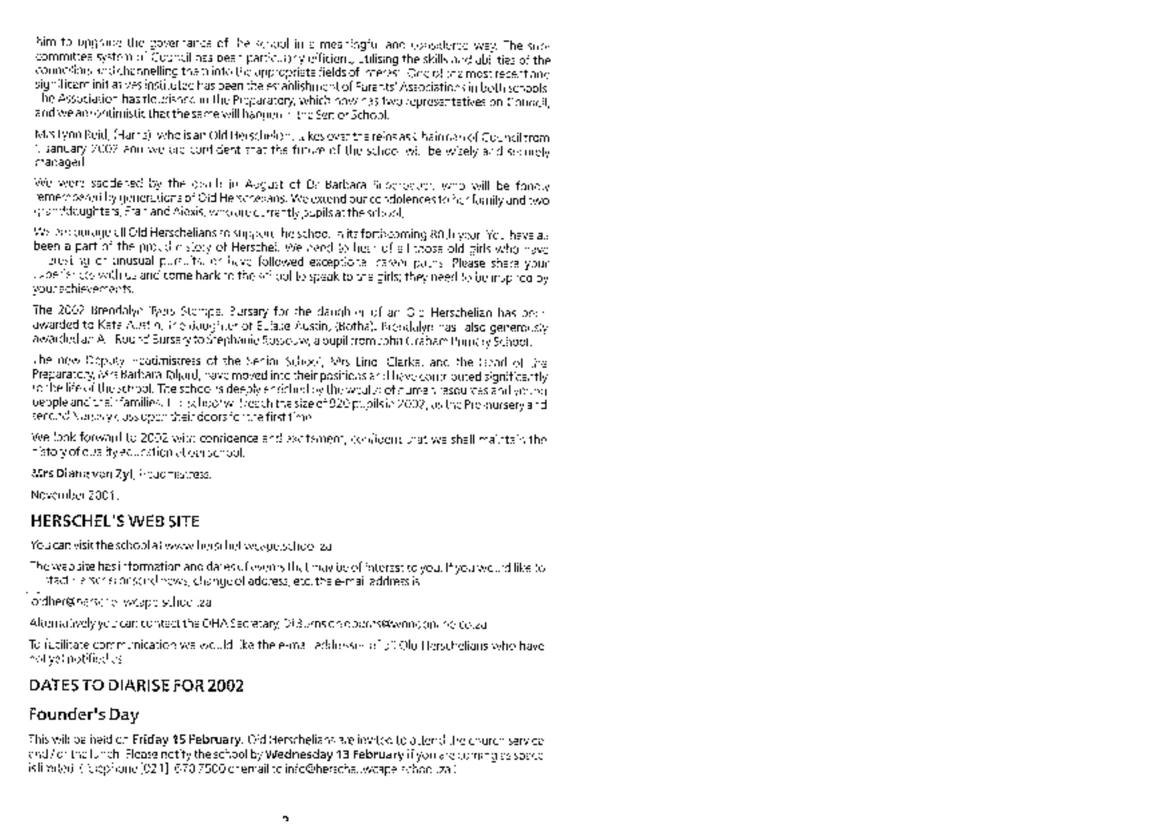 : Old Herschelian Association Newsletter 2002