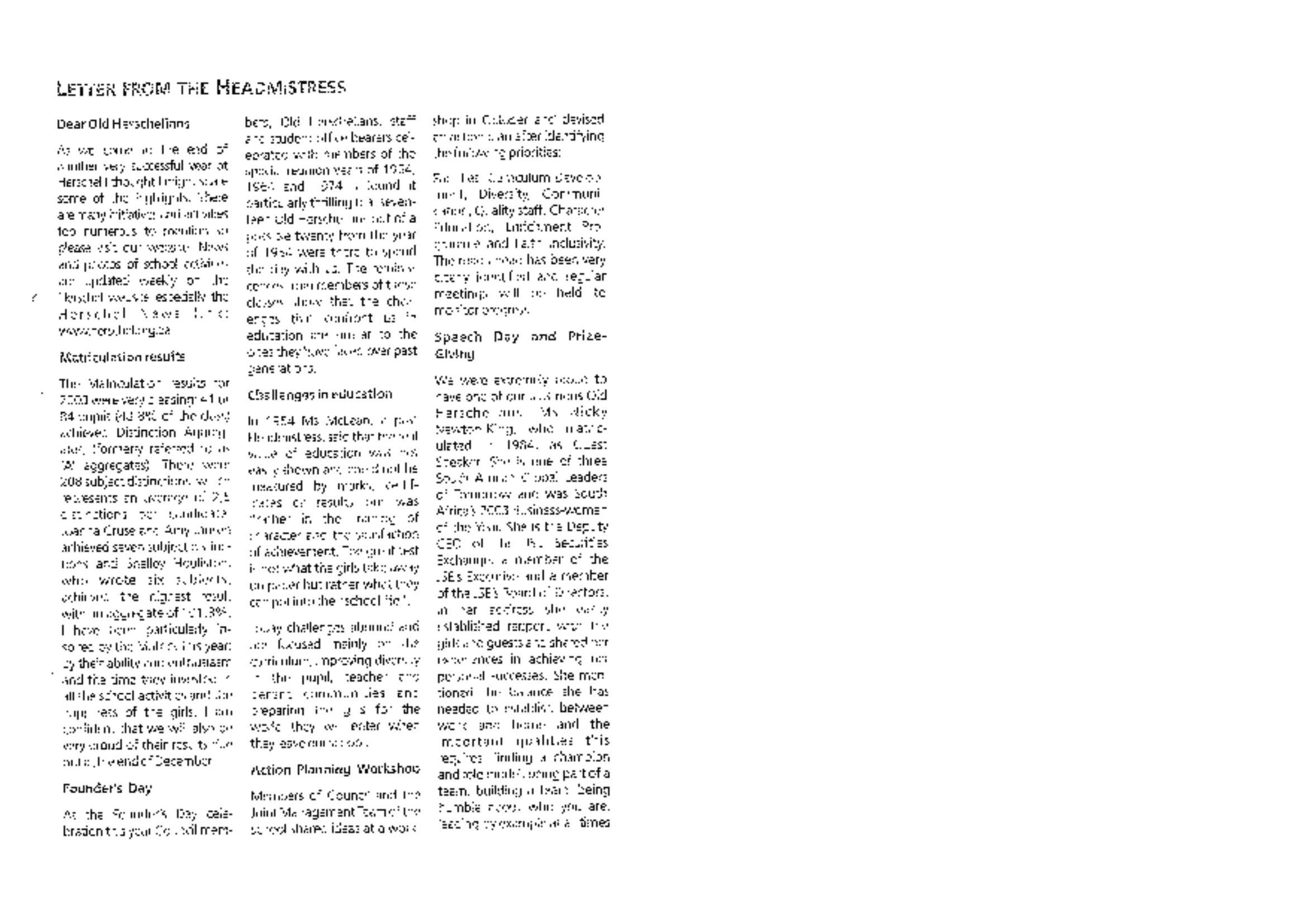 : Newsletters; Old Herschelians Association (OHA)