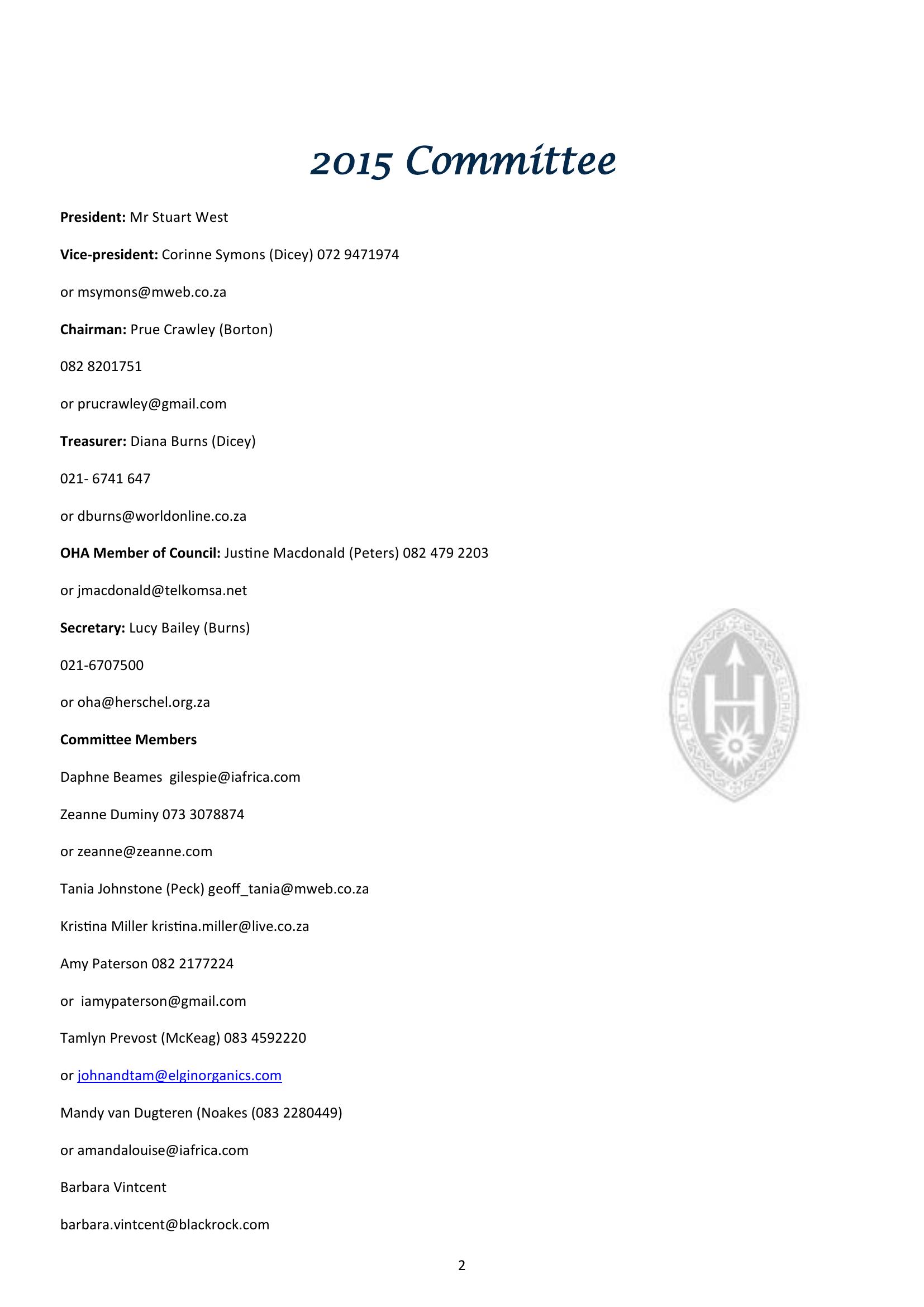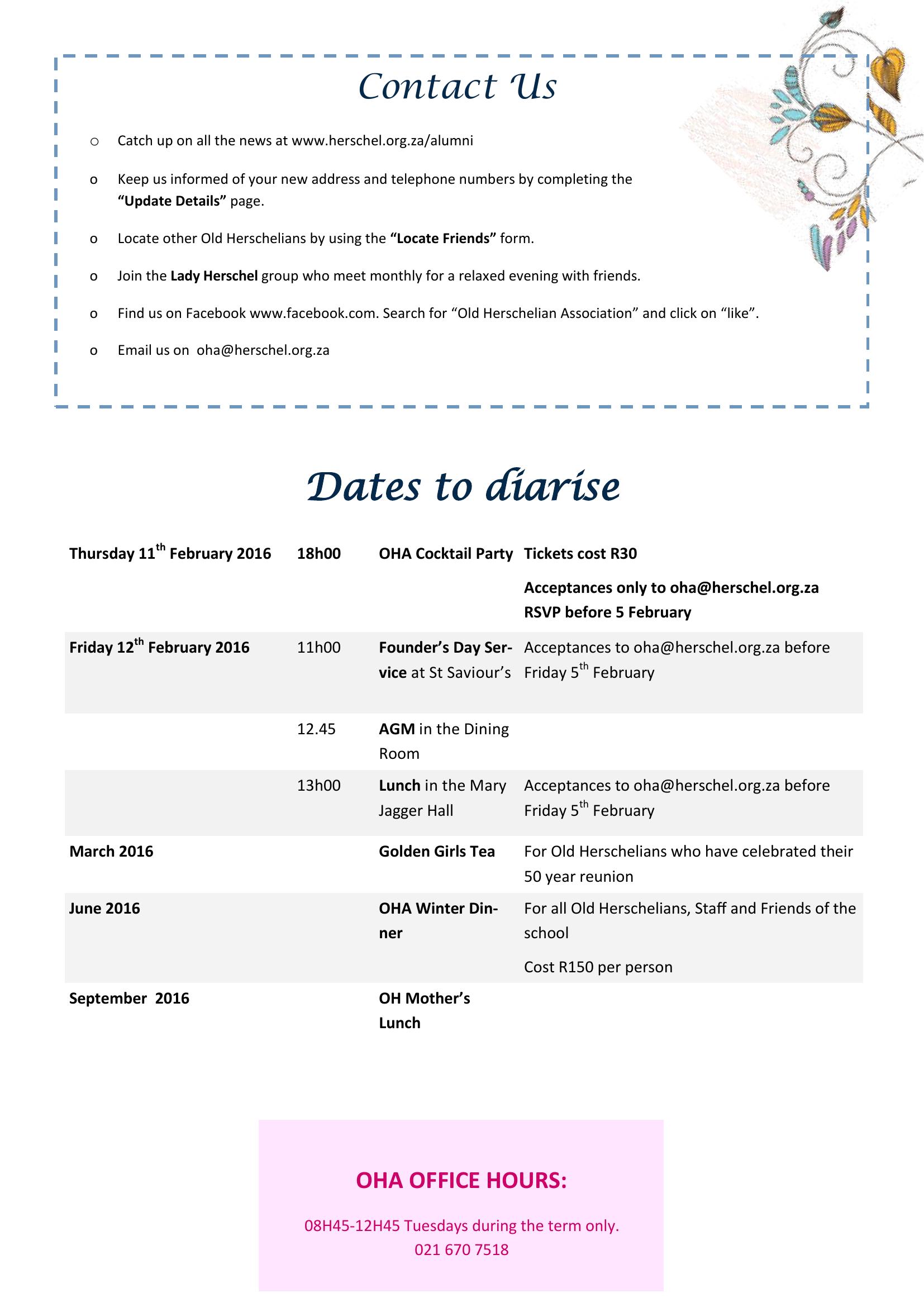 : Newsletters; Old Herschelians Association (OHA)