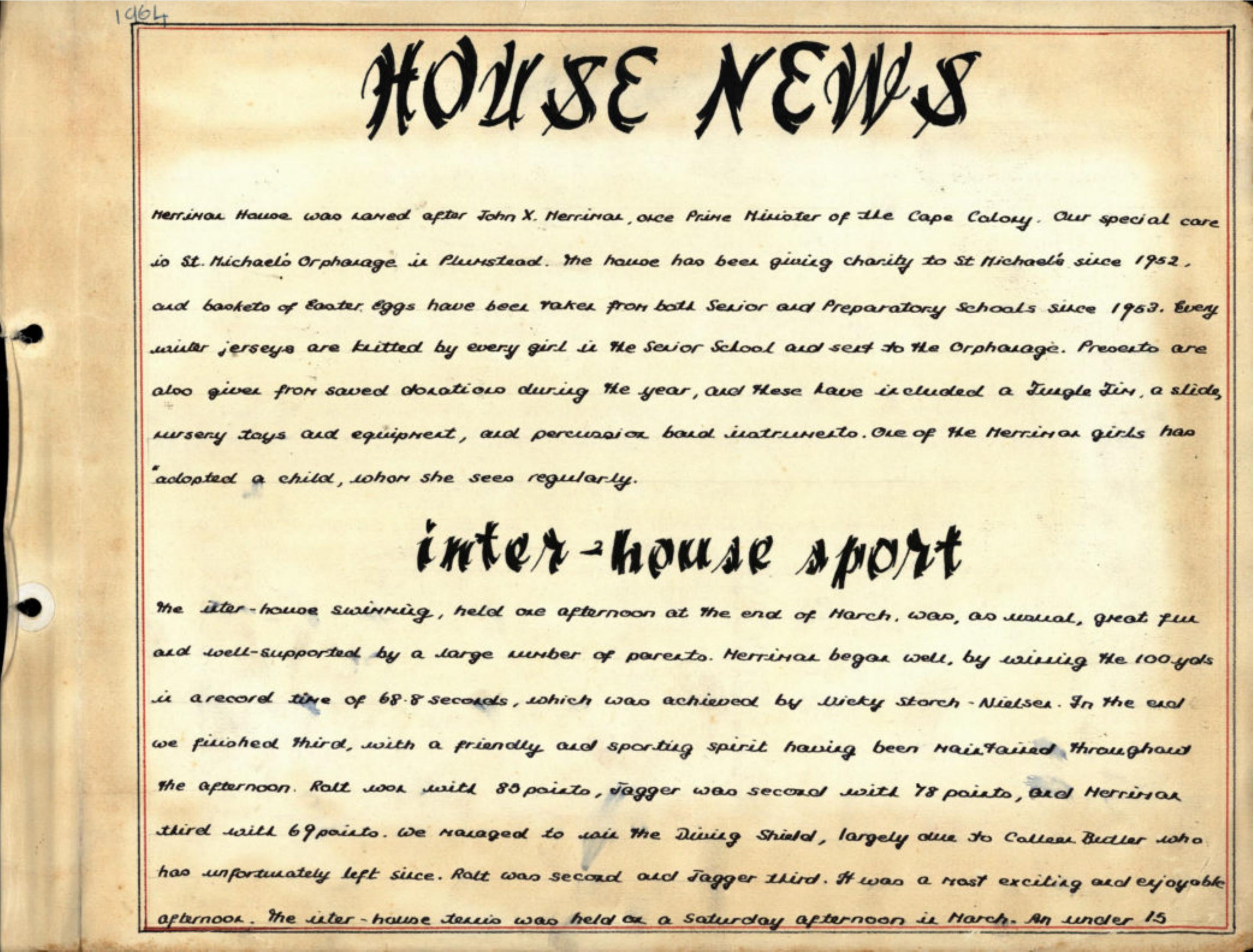 Description: House magazine: Merriman 1964 Red cloth cover with white central band with Merriman in gold letters