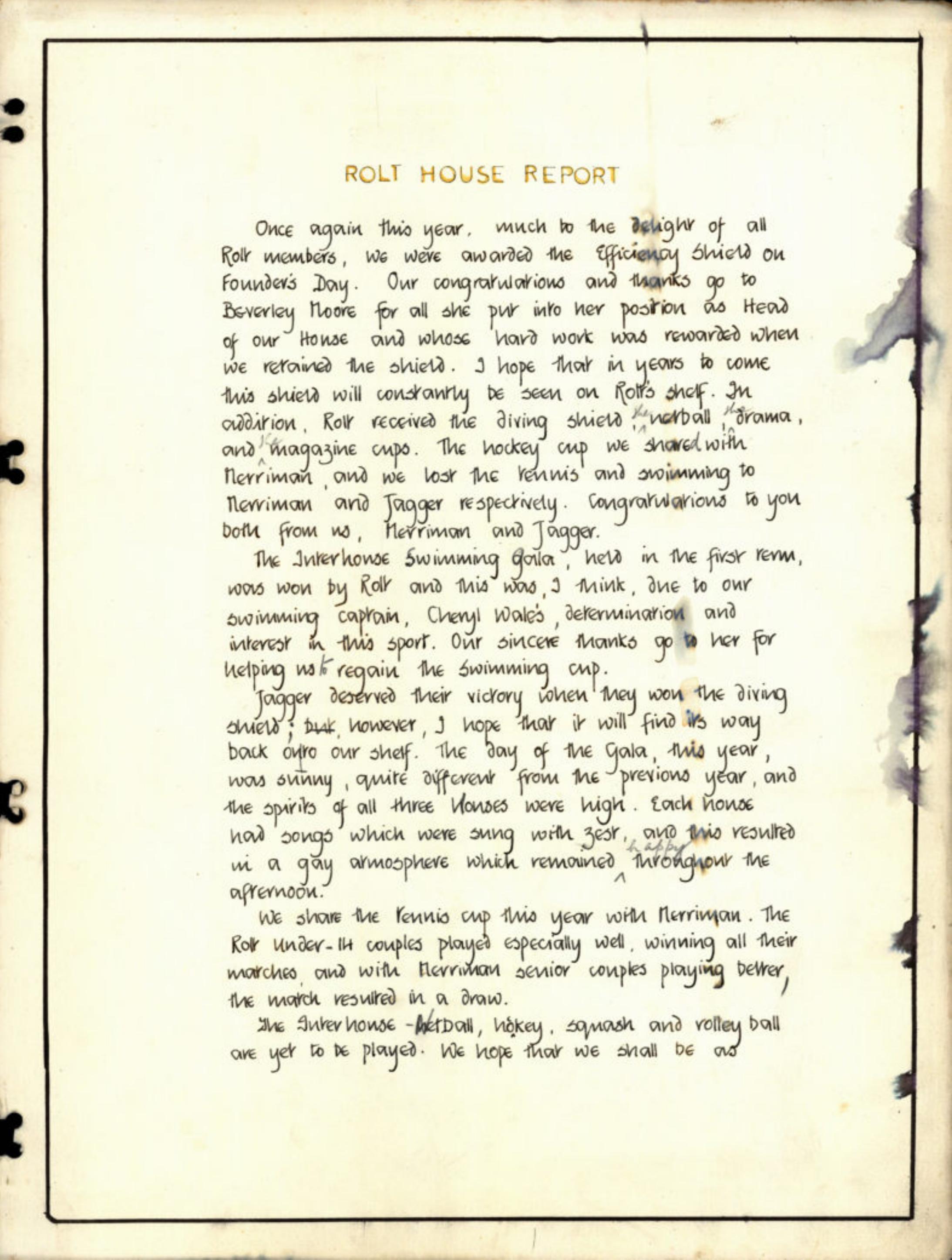 Description: House magazine: Rolt 1967 Blue fabric cover with Herschel badge in centre; outline of Rolt 1967 where there were applied letters