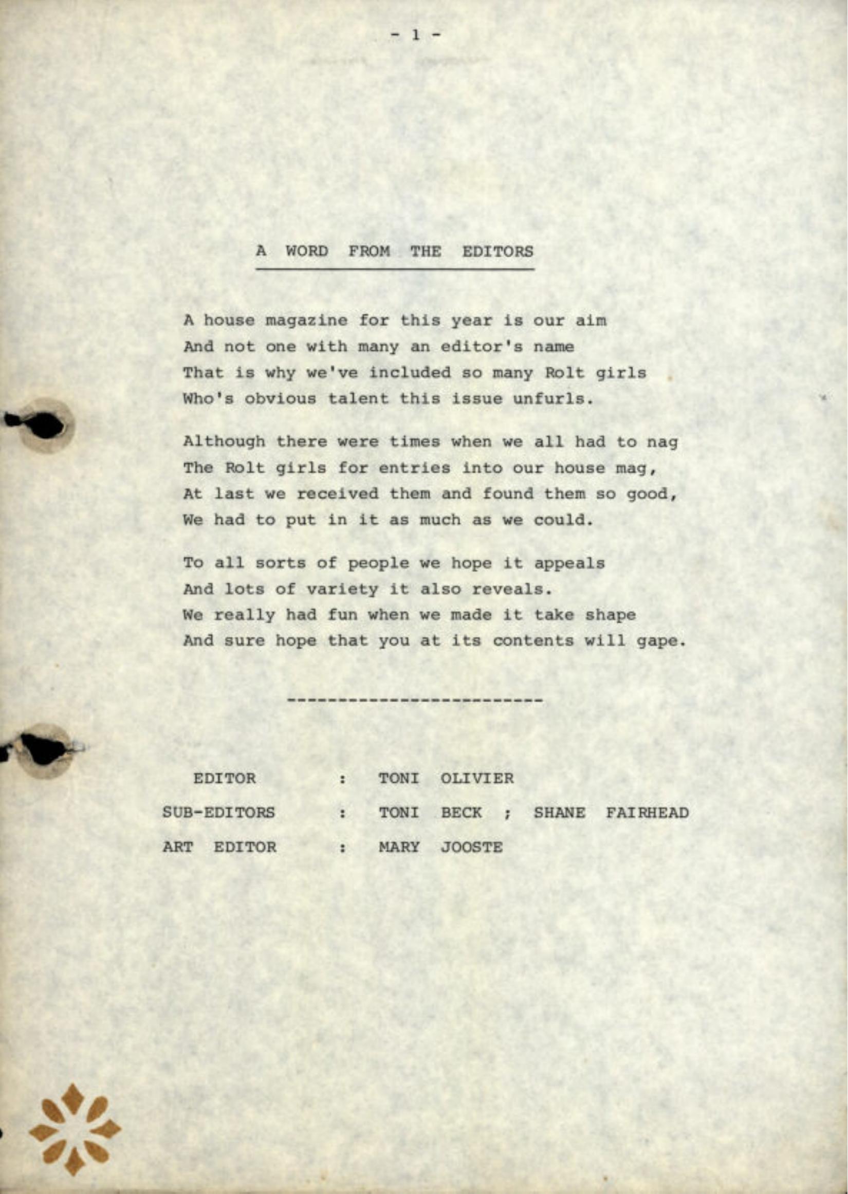 : House magazine: Rolt 1980 The house song. Orange cover with Rolt 1980