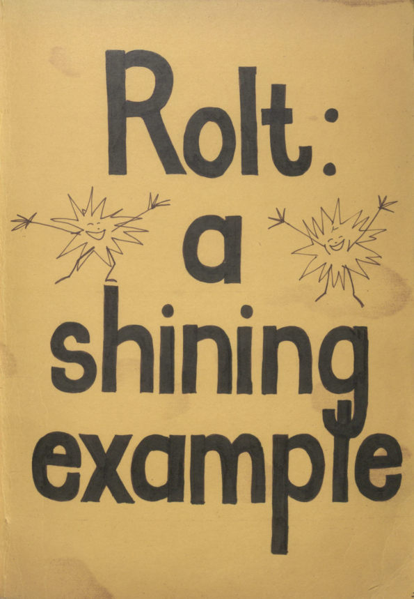 Cover with photograph of girls in front of the Ilex tree, some wearing Rolt tshirts. Title page: Rolt: a shining example